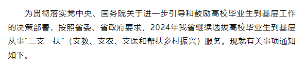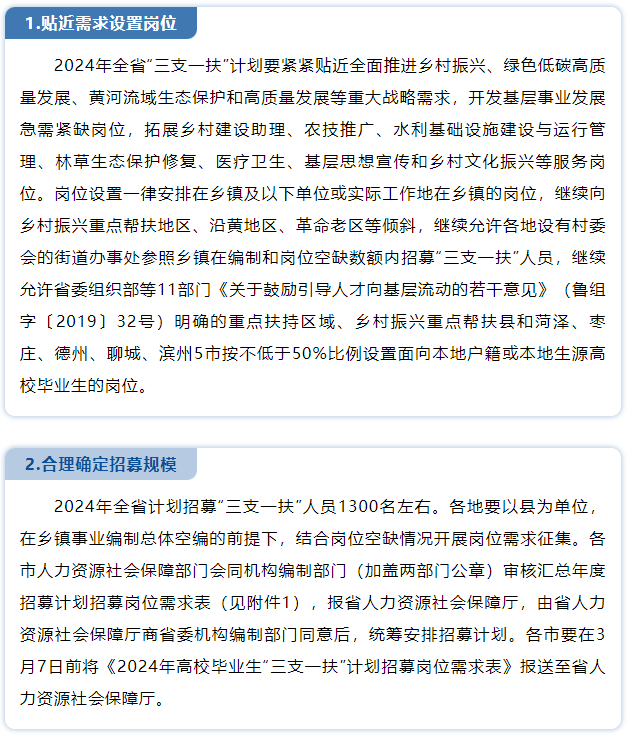 2024年山东“三支一扶”计划招募1300名左右毕业生