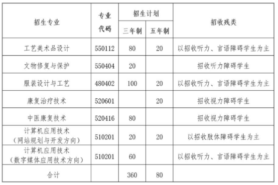 2023年残疾考生单独招生计划:三年制360人,五年制80人。
